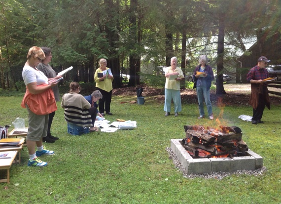 Members of the Toronto Sangha held a Sangha Day in the country on Saturday, September 6. The day included meditation, a potluck lunch, and singing dharma songs around the “campfire” as we disposed of dharma material no longer being used.